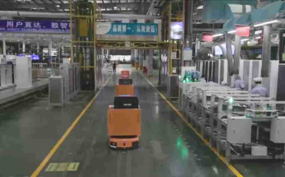 为车载冰箱物流配送打造的智能解决方案,,包含产中物流通过潜伏举升AMR搬运至线边,,,,产后成品物流智能仓储,,,流程包含产中物流智能齐套入库,,线边安灯叫料AMR智能配送至线边,,,成品入库、、出库,,,通过无人堆高车机器人,,,,智能仓储管理替代人工作业管理,,,实现更高存储、、更高效率、、更具柔性化的解决方案。。。